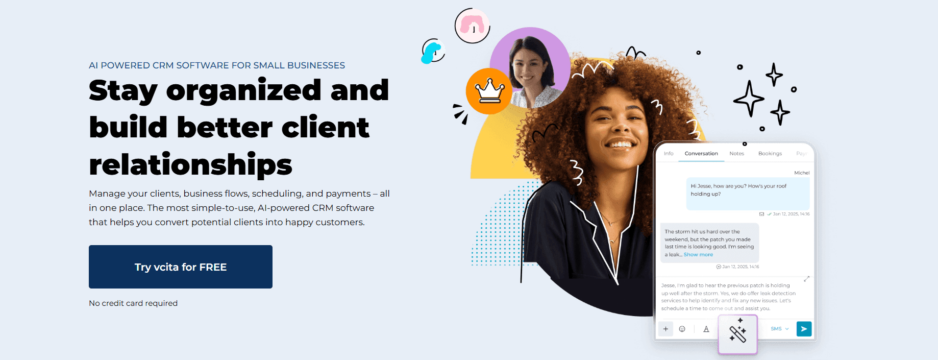 All-in-one client management: CRM + lead tracking, client communication history, and a client portal for booking, paying, and messaging.